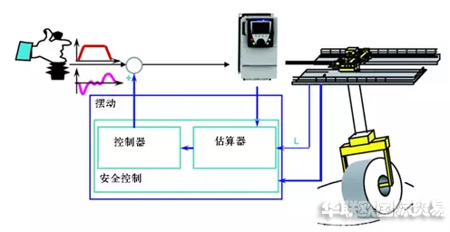 防搖擺控制是利用鐘擺原理,通過修改發給電氣控制系統的速度命令信號而連續限制擺動。通過檢查吊鉤的起升高度來計算擺動的角度,然后通過給定的加速度和減速來抵消擺角。當物體在達到設定的速度或者停止擺動很小或者基本沒有擺動。