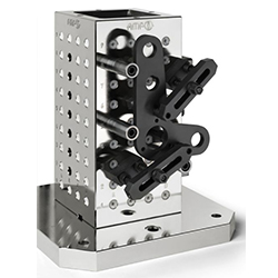 德國AMF夾具產品原理既清晰又令人信服:帶有網格孔的托盤、角鋼和立方體作為基本元件,以及兩種標準尺寸(M12、M16)的裝配、定位和夾緊元件是AMF夾具系統的組成部分。德國AMF通過這種模塊化系統,他們提供了靈活的夾具結構,以延長機器使用時間并縮短設置和非生產時間。