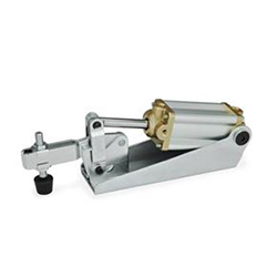 鉸接夾GN 861的構(gòu)造使其易于拆卸。軸承螺栓用擋圈軸向固定。這允許修改夾持臂以適應(yīng)任何特定應(yīng)用。為確保機(jī)械部件和氣缸的使用壽命延長(zhǎng),工作壓力不應(yīng)超過(guò)6 bar。此外,應(yīng)在空氣管路中安裝潤(rùn)滑控制單元。鉸接夾GN 861可用作M型(磁性活塞)。與GN 896.3接近開(kāi)關(guān)結(jié)合使用,可檢測(cè)終端位置,生成的信號(hào)可用于順序控制系統(tǒng)。用于夾緊螺釘GN 801的支架已開(kāi)發(fā)用于與設(shè)計(jì)有叉形夾緊臂的肘節(jié)夾一起使用。