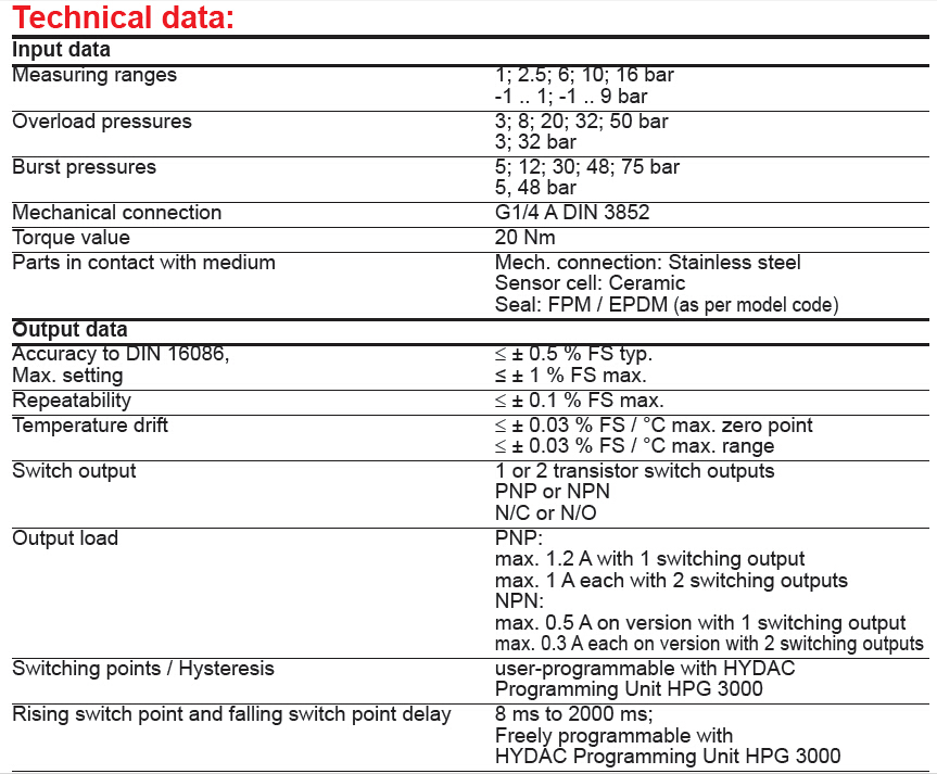 HYDAC壓力開關(guān)EDS4300 系列產(chǎn)品參數(shù):