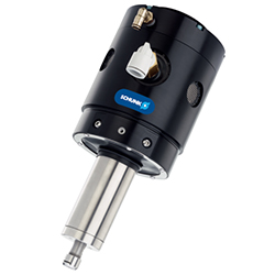 ①通過扭矩最大為65,000轉/分(取決于模塊尺寸)的氣動主軸進行裝置傳動。主軸可旋轉安裝,以保持整個機加工輪廓的公差。刀頭處的最大行程為±9 mm。移動(振動)主軸需要力(硬度)。其受第二個空氣接口控制。根據壓力不同,作用于銑削表面的力為3.1 N至89 N。