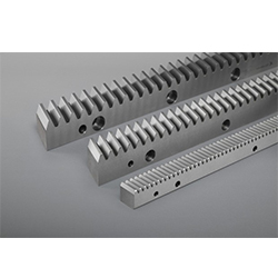 在正齒輪的情況下,避免了結構上出現的軸向力。此外,它們的生產相對簡單且便宜。正齒輪的主要缺點是齒條和小齒輪嚙合的突然變化和較高的噪音水平。因此,對于較低的圓周速度,建議使用直齒條。斜齒輪提供更平穩的運行、更高的負載能力和更連續的扭矩傳遞。然而,必須預期更高的購置成本和必要的軸向力補償。制造機架的材料因要求而異。常用于機械工程和車輛制造的回火鋼C45也在這里使用。